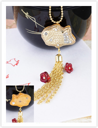 型(モールド)を用いてパテを型からきれいに抜くテクニックを学びます。“あんこ”が透けて見える遊び心のある表現方法はまさに「おいしそう!」。本物そっくりな焼き色をつけた面と、ゴージャスなゴールドのパウダーをつけた面の両方が楽しめるリバーシブルです。効き色の赤いフラワービーズを加えたチェーンのフリンジを付ければジュエリー感あふれる大人のストラップの出来上がり。