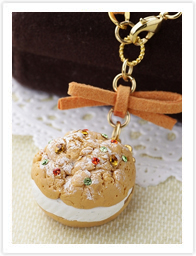複数のパーツを組み合わせて1つのパーツ(シュー皮の蓋)を作ります。焼き上がりや生クリームの質感表現、シュガーパウダーの表面加工を学びます。アクセサリーメイキングでは可愛らしいチェーンリボンを作ります。